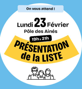 Présentation de la liste Publié le février 16, 2026 (février 16, 2026) par admin4269 19h – 21h au pôle des aînés