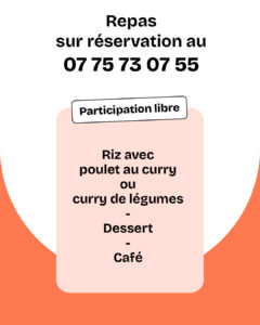 Suite à l’atelier, nous proposons un repas sur inscription et avec participation libre. Veuillez vous inscrire grâce au formulaire ci-dessous.